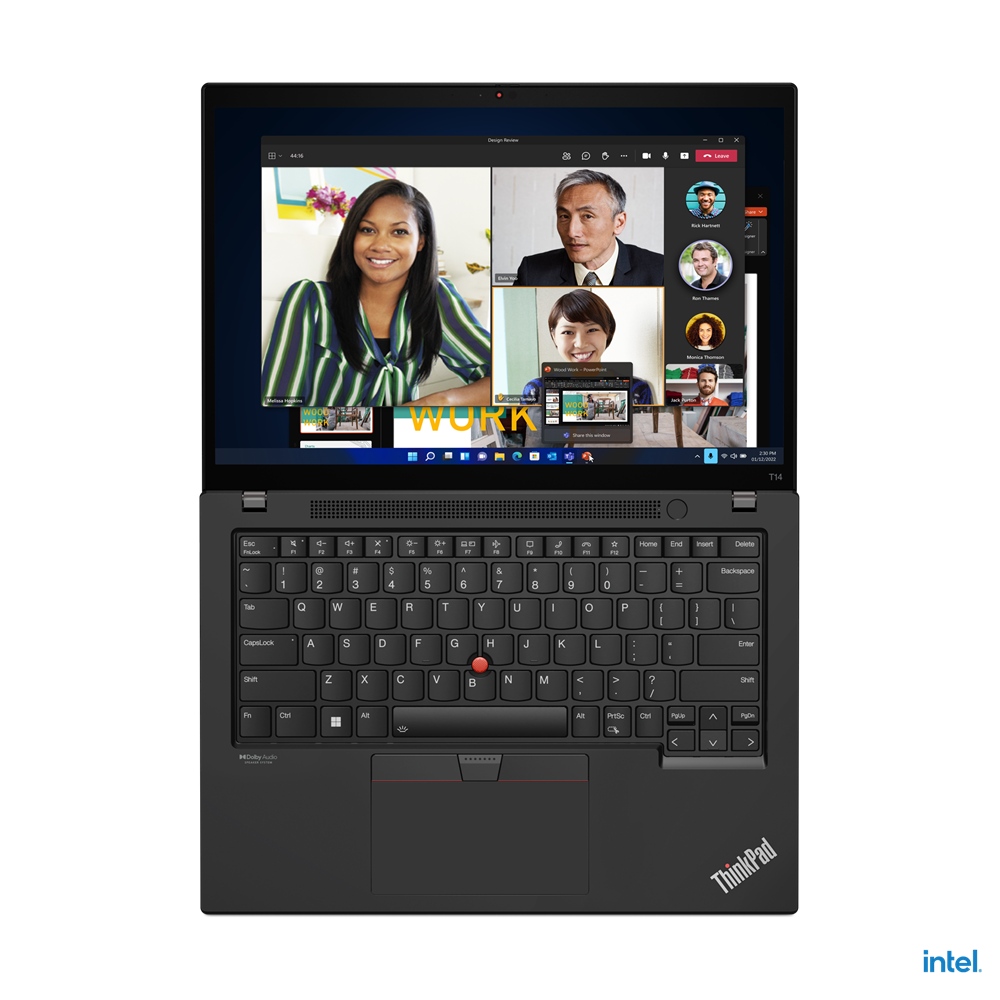 From videoconference calls to being creative and quality downtime, the ThinkPad T14 Gen 3 ticks every box. The 14” display has a huge screen-to-body ratio and an expansive 16:10 aspect ratio, while options include a WQUXGA touchscreen with Dolby Vision™ and FHD camera. Together with Dolby Audio™ and Dolby Voice® AI noise-suppressing technology, a truly immersive audio/visual experience awaits play to help further prevent eye fatigue.