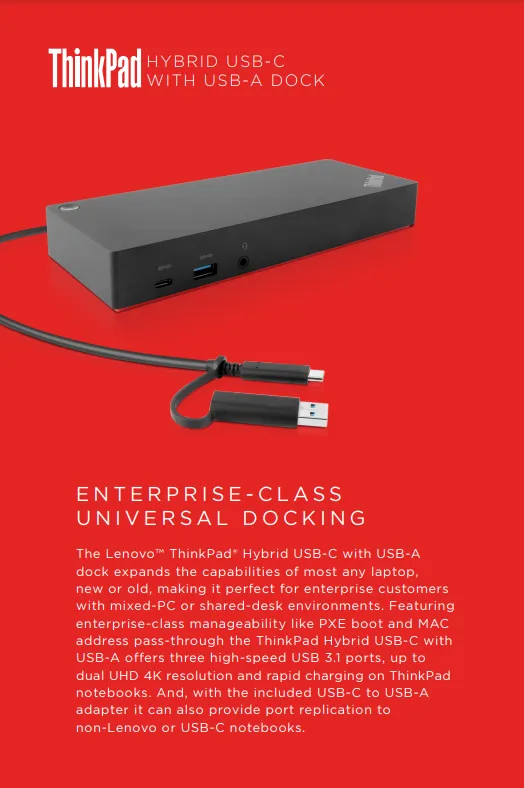 ThinkPad Hybrid USB-C with USB-A Dock (UK Standard Plug Type G)40AF0135UK【Bytebox】